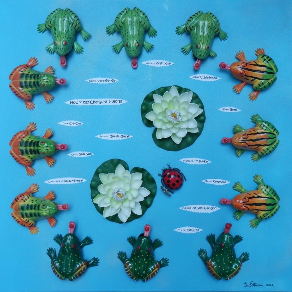 Re-populate the whole garden with invisible frogs! That is to say, introduce frogs that can only be heard! The mechanism for realizing this could be quite simple…perhaps 20+ amplifiers/speakers spread around the gardens broadcasting a ‘symphony’ of croaking frogs. This ‘symphony’ would be composed of real frog croaks…and a chorus of humans trained to imitate frog croaks…The sounds produced by these ‘human frogs’ would be lightly camouflaged political messages—short texts, sentences, proverbs (such as ‘When elephants fight, it is the frogs that suffer’) intoned to sound like frogs calling. This ‘symphony’ would be omnipresent throughout the garden, but not overwhelming or abusive…a kind of ‘sonic graffiti’…