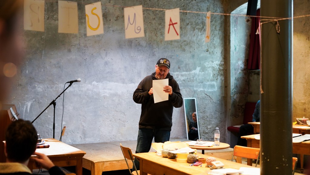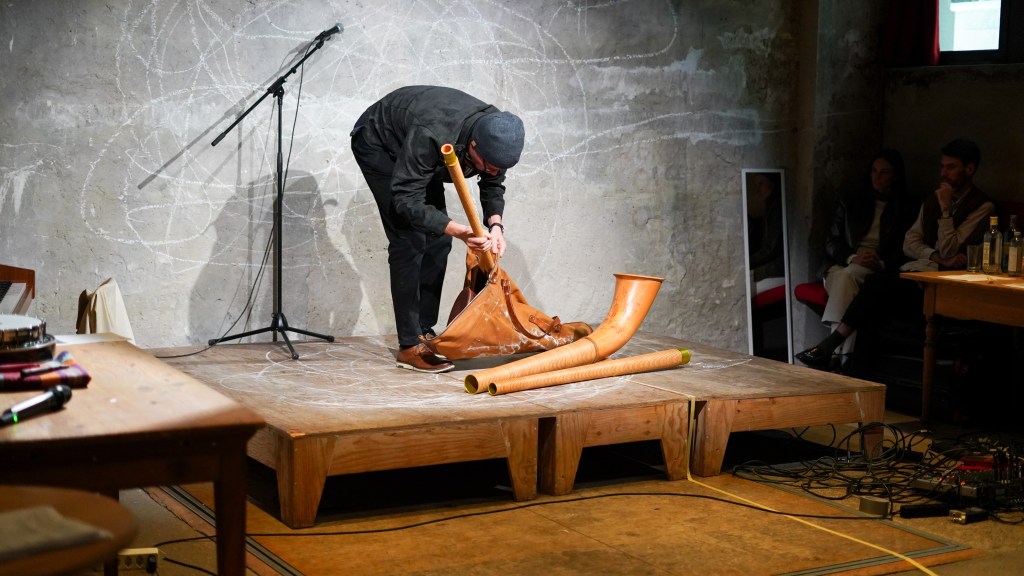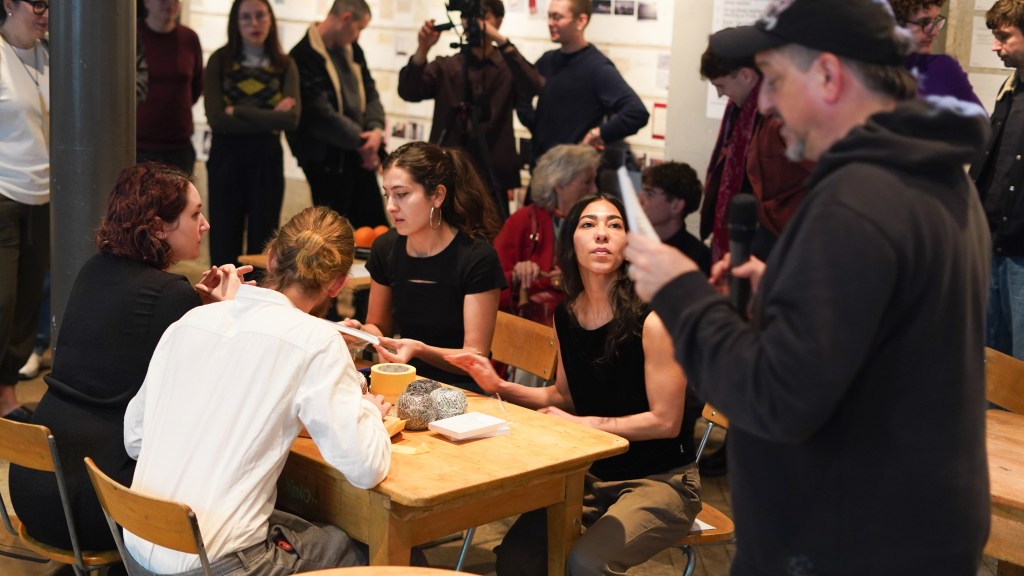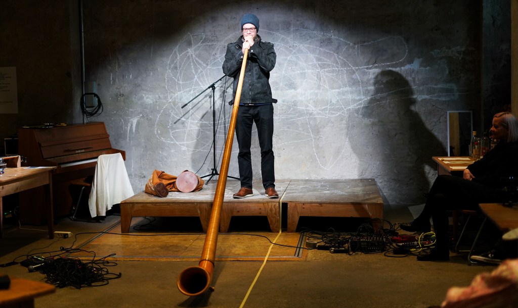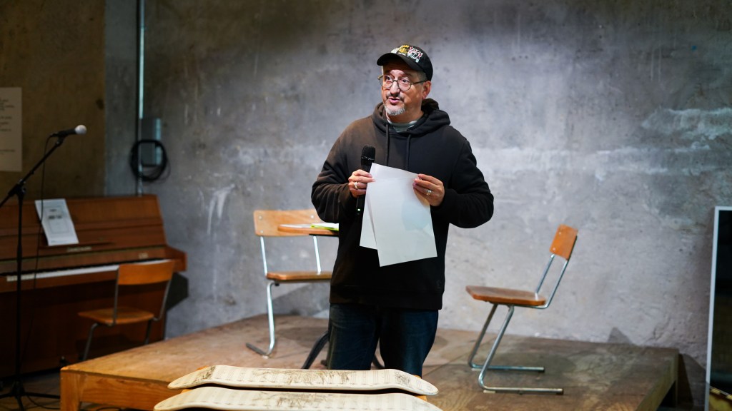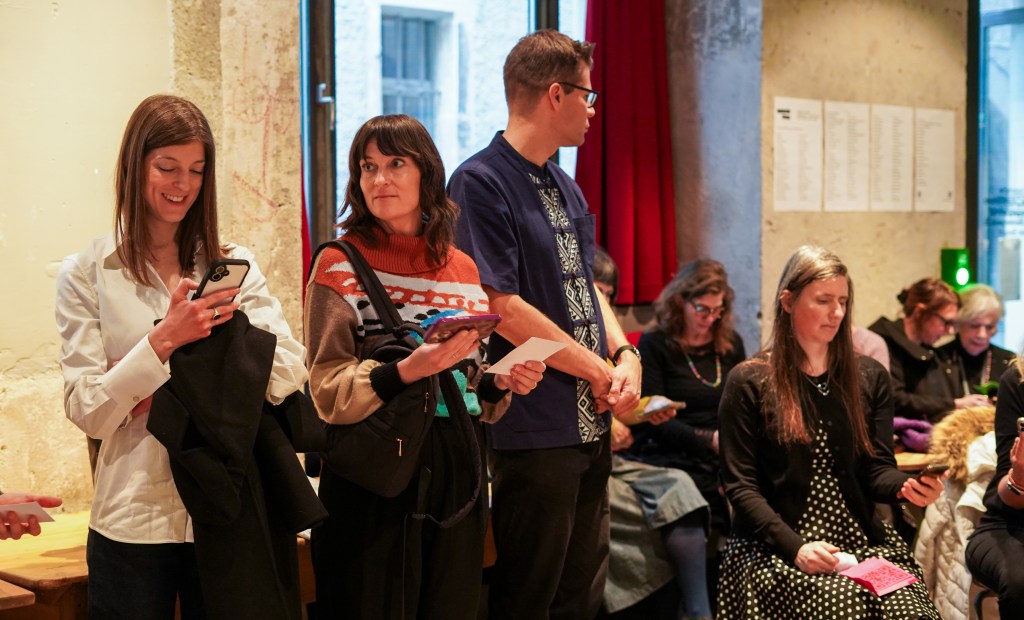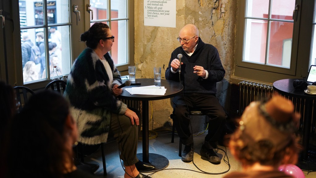 On view was a curated selection of Fluxus scores from FLUXUS.GRAM, spanning both historical Fluxus texts and contemporary contributions created in the spirit of Fluxus and gathered over the preceding months. The program unfolded in three parts: it opened with live score activations featuring special guests and audience participation—sometimes guided by the artists themselves, sometimes shaped by the spontaneous involvement of those present. This was followed by talks by Ann Noël, Ken Friedman and Nicholas Schärer, in which a dedicated program segment reflected on historical Fluxus positions and their most recent resonances and successor projects. The event concluded with an open stage of surprise guests and experiments, inviting further interventions, actions, and unexpected moments. The afternoon was moderated by Johannes M. Hedinger and Basile Mudry.