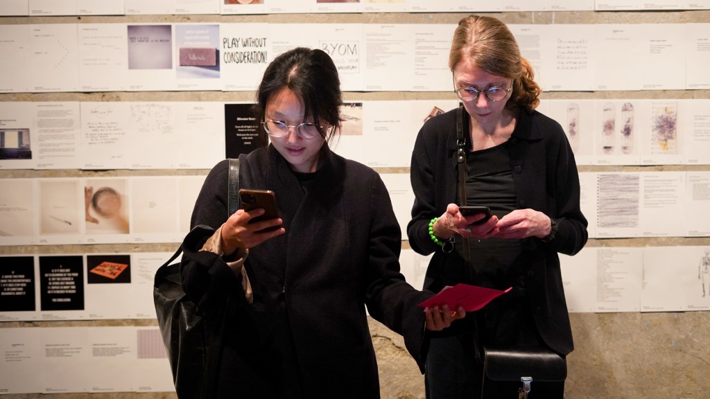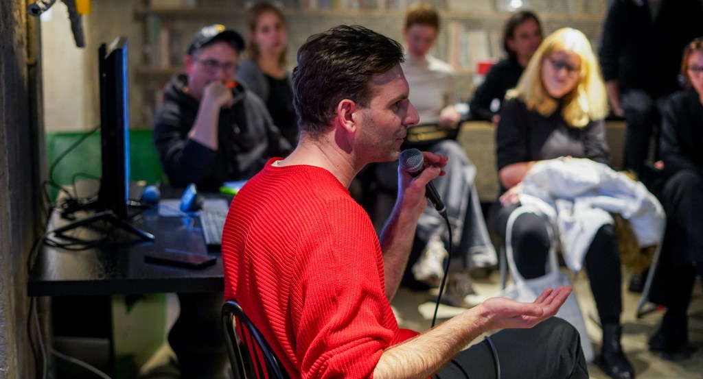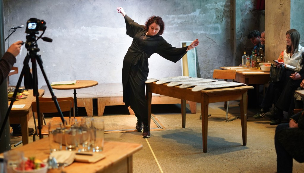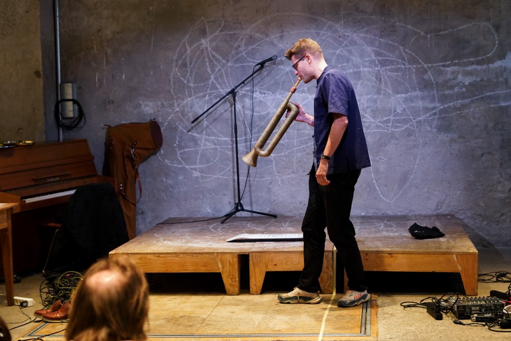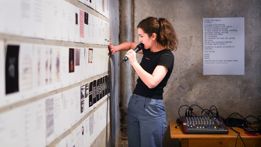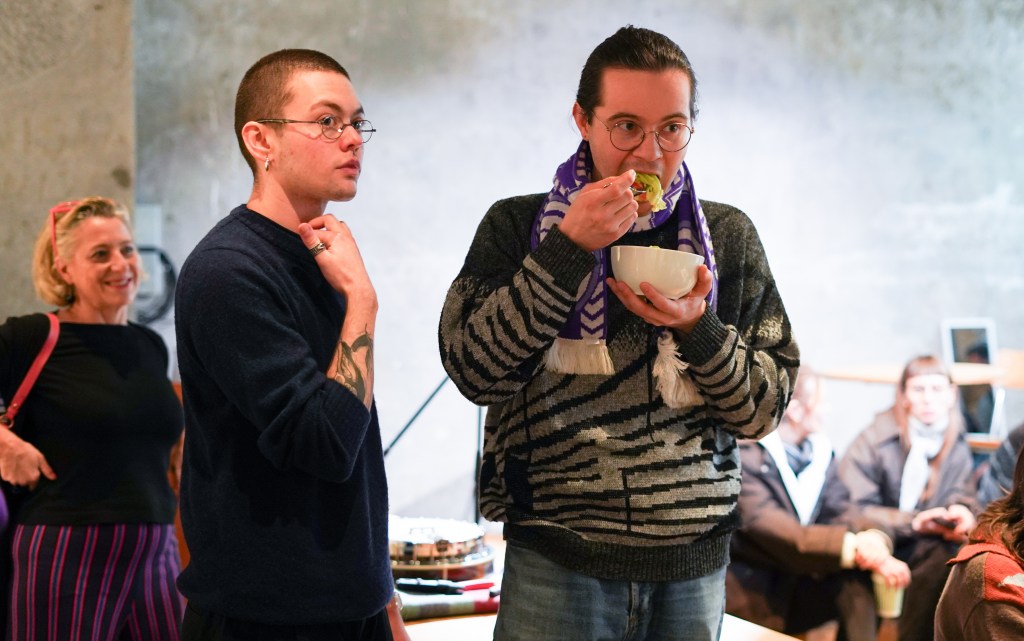 On view was a curated selection of Fluxus scores from FLUXUS.GRAM, spanning both historical Fluxus texts and contemporary contributions created in the spirit of Fluxus and gathered over the preceding months. The program unfolded in three parts: it opened with live score activations featuring special guests and audience participation—sometimes guided by the artists themselves, sometimes shaped by the spontaneous involvement of those present. This was followed by talks by Ann Noël, Ken Friedman and Nicholas Schärer, in which a dedicated program segment reflected on historical Fluxus positions and their most recent resonances and successor projects. The event concluded with an open stage of surprise guests and experiments, inviting further interventions, actions, and unexpected moments. The afternoon was moderated by Johannes M. Hedinger and Basile Mudry.